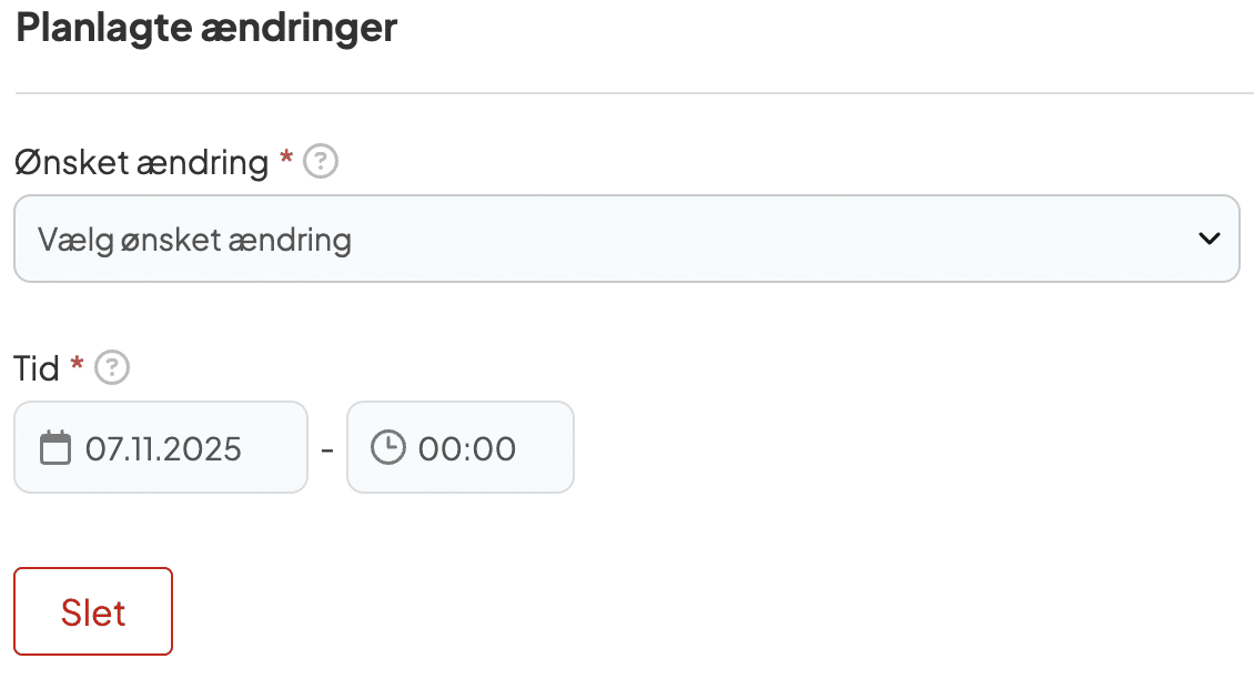 Det er muligt at tilføje planlagte ændringer på dit arrangement. Du kan fx sætte systemet til at offentliggøre eller gøre det til et lukket arrangement efter en bestemt dato og et bestemt tidspunkt.