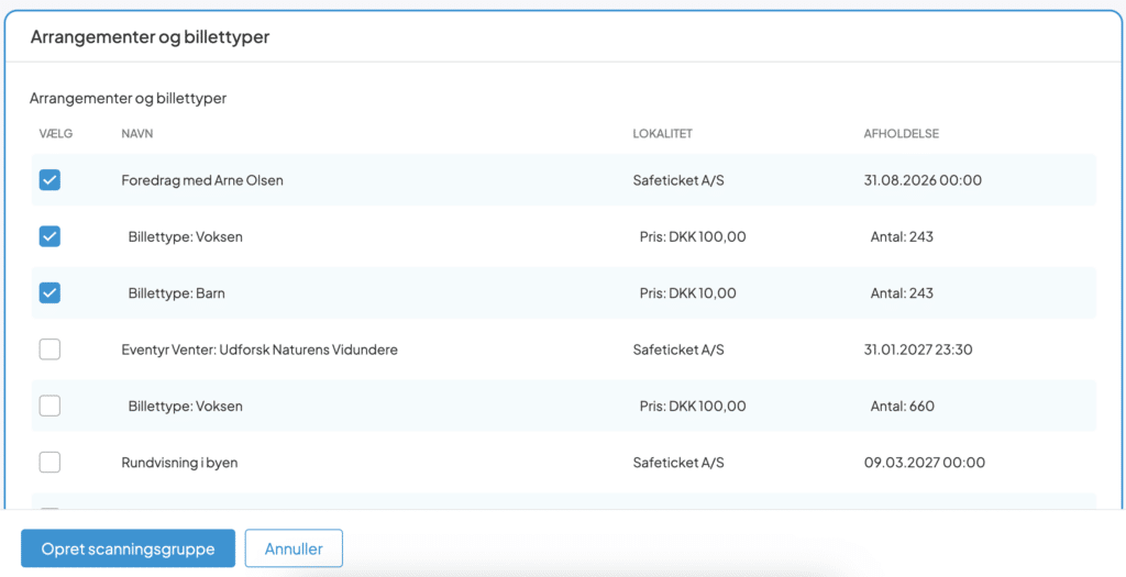 Scanningsgrupper – Scan billetter på tværs af arrangementer