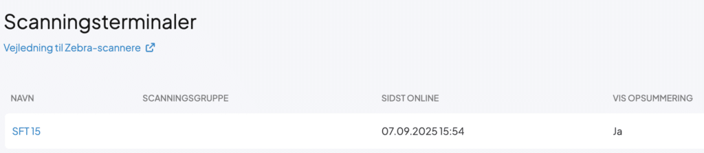Du kan klikke ind på navnet af scanningsterminalen og ændre scanningsgrupper, hvis det ikke er den rigtige, der står på listen.