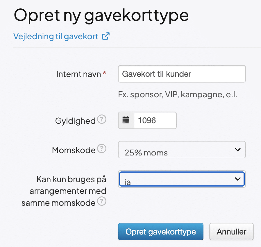 Guide til oprettelse af gavekort