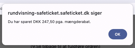 Bemærk: Det er ikke alle arrangører, der har mængderabat aktiveret i billetsystemet. Ønsker du at benytte dig af denne feature, skal du blot kontakte os for at få det aktiveret i dit billetsystem.