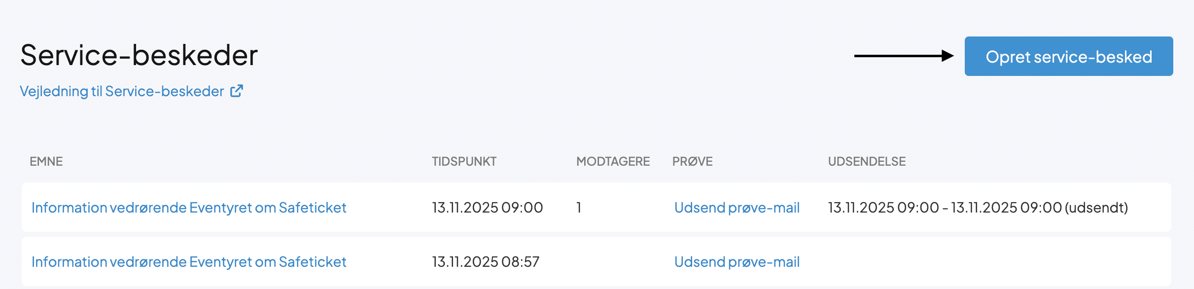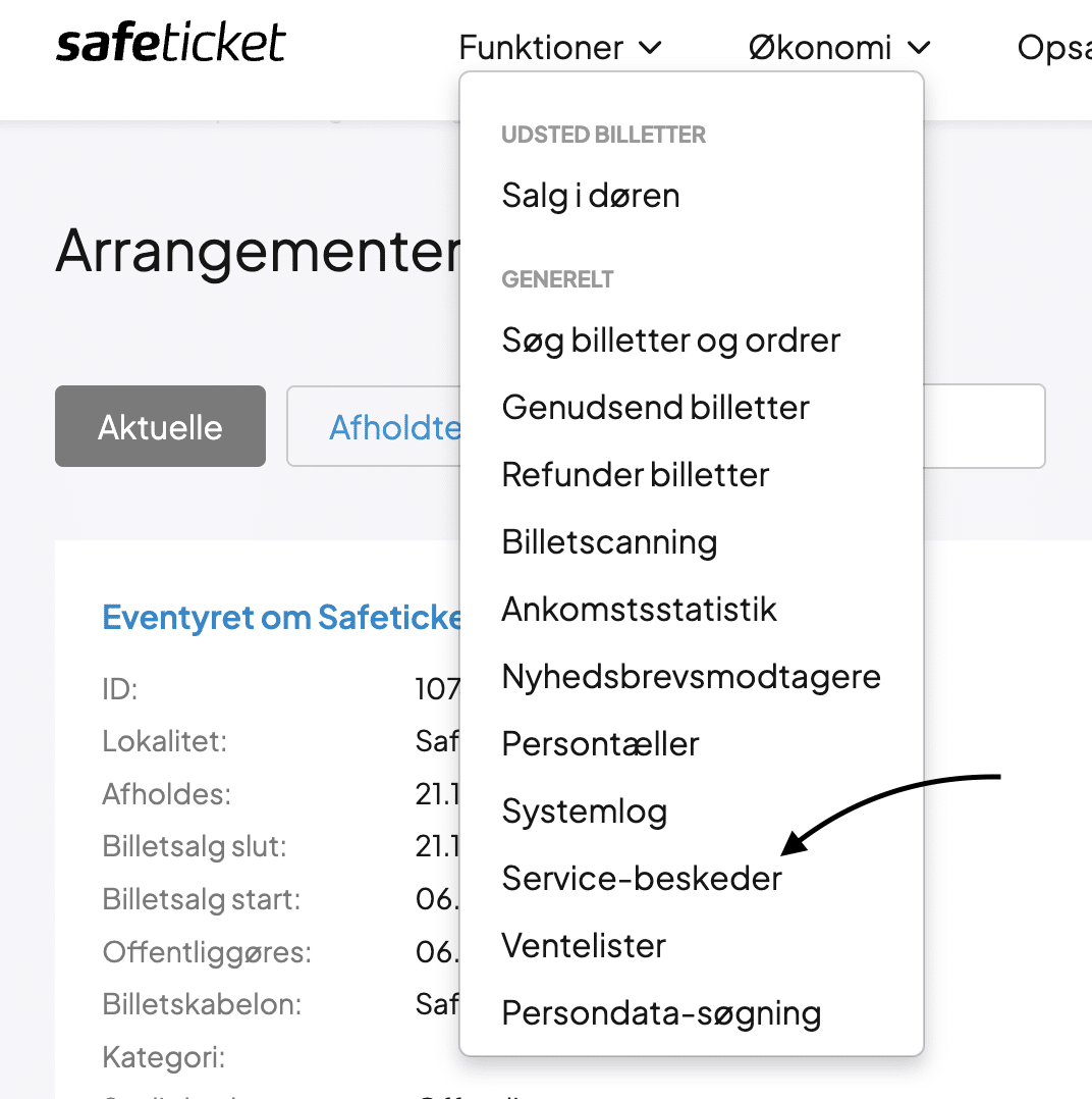 Udsend service-beskeder i Safeticket